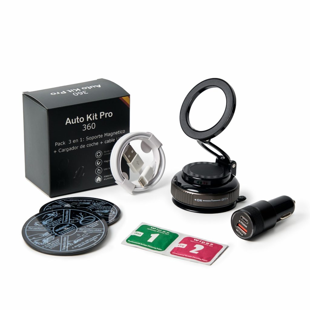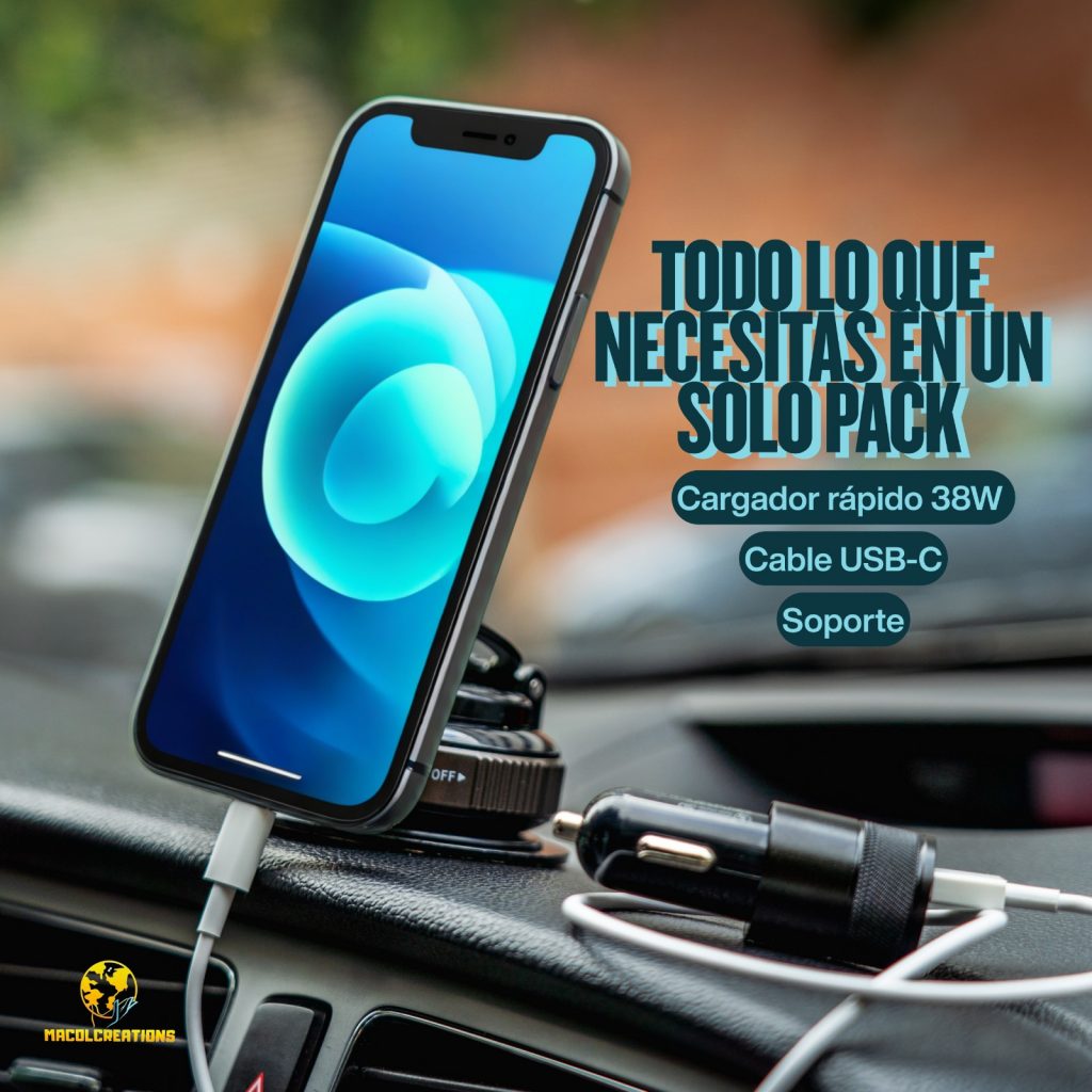 - Carga rápida incluida: ahorras dinero por que nuestro soporte móvil coche incluye cargador de coche USB-A QC3.0 + USB-C PD (hasta 38 W) para recargar dos dispositivos a la vez y un cable USB-C de 1 m para conectar al instante así que no tendrás que buscar ningun otro accesorios coche.
