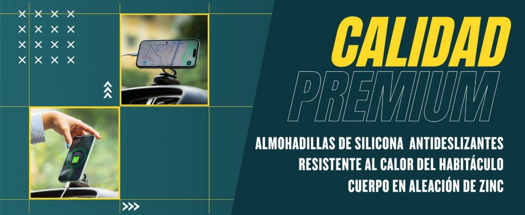 - Cuerpo metálico premium: estructura en aleación de zinc con almohadillas de silicona antideslizantes: resistente al calor del habitáculo y al uso diario.